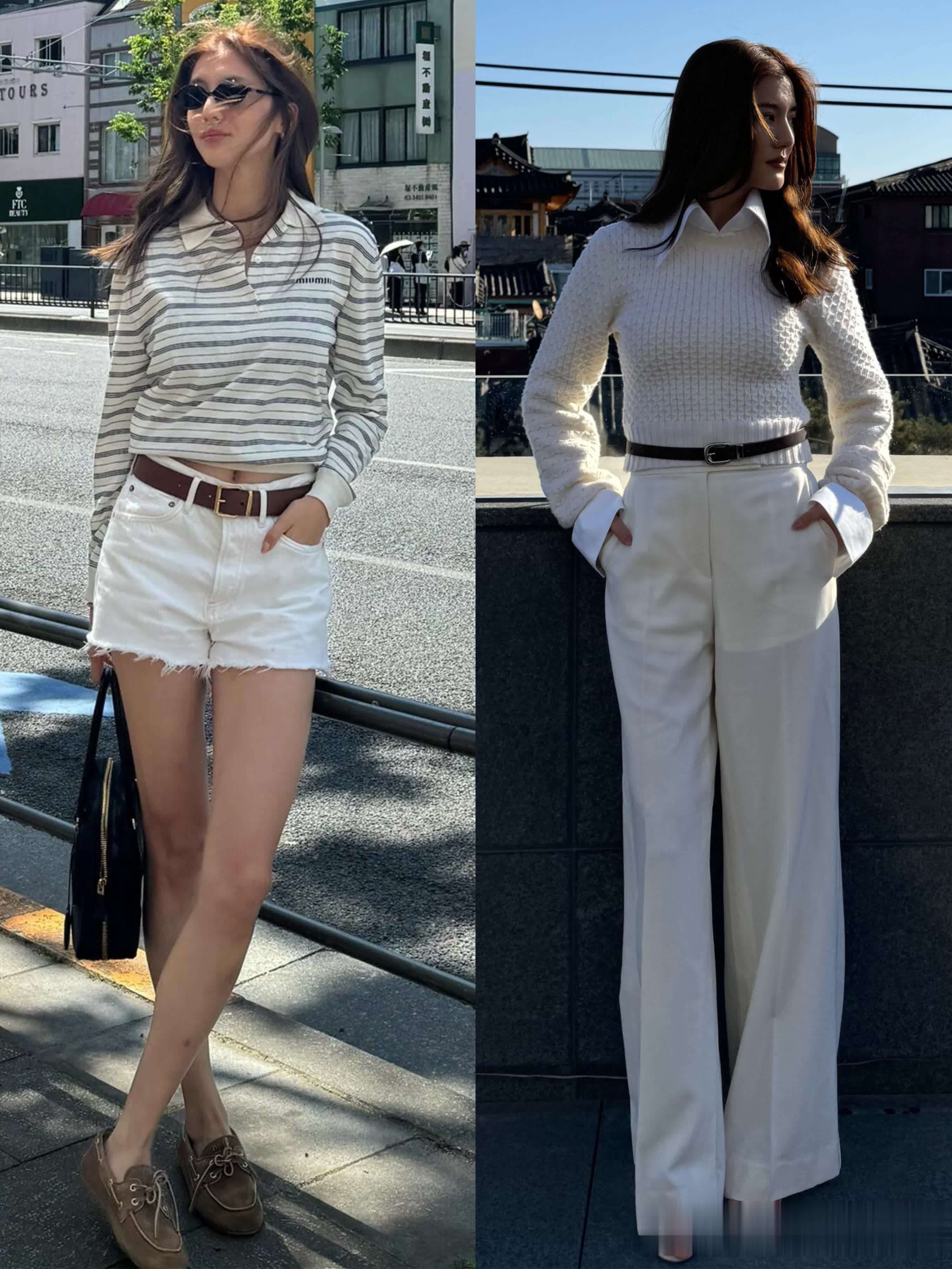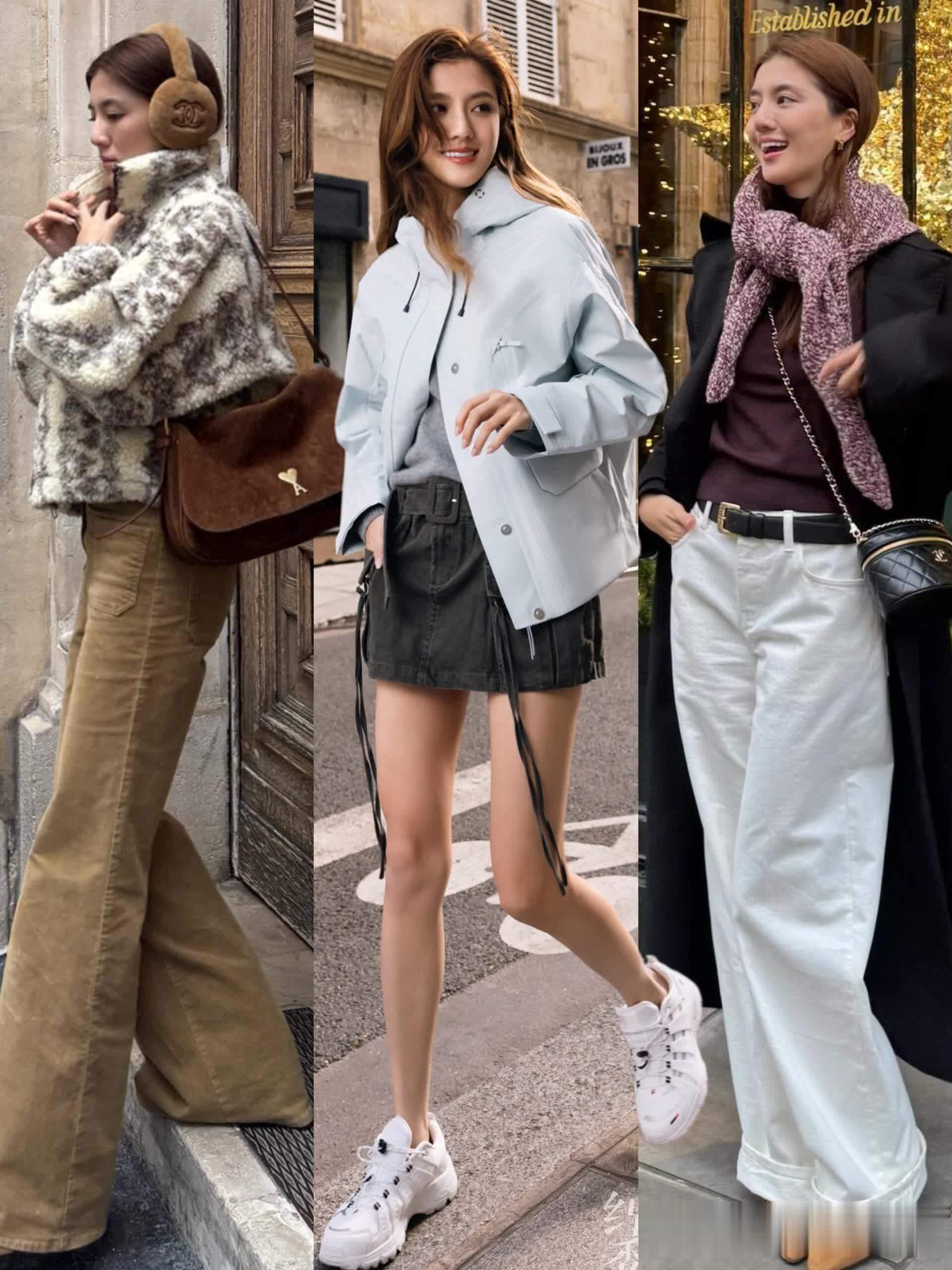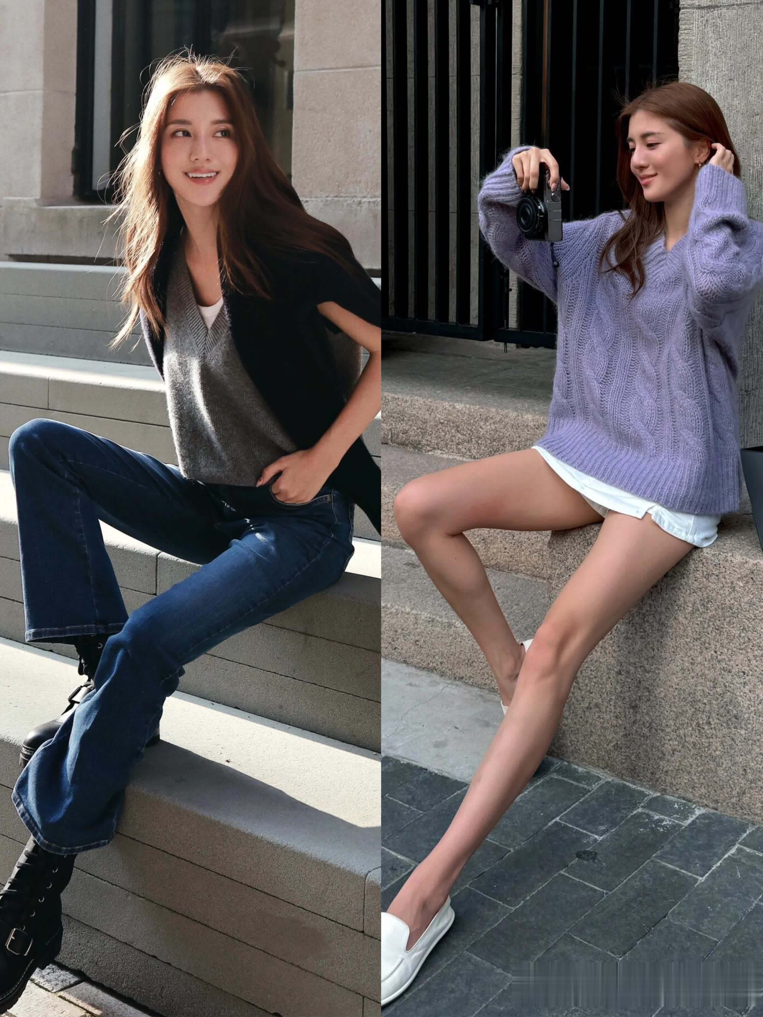 那套白色针织开衫配牛仔裤的look,看着简单到不行,却藏着小心思。开衫的袖口卷到小臂,露出细巧的手腕,牛仔裤卷着边,踩双帆布鞋,头发随意挽成个低马尾,碎发垂在脸颊边。上次仿着这么穿去公园散步,朋友说“你今天怎么有种‘什么都没做却很美的’感觉”。这大概就是她穿衣服的妙处——不刻意强调线条,不硬凹造型,舒服得像没穿衣服,却偏偏把“好看”两个字写在身上。